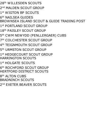 We would be pleased to add links here to other Scouting and Guiding web sites particularly if  you link back to the Woggle Workshop from your site.  We are pleased to have supplied woggles etc to the following, THANK YOU FOR YOUR SUPPORT. CUSTOMERS & LINKS We would be pleased to add links here to other Scouting and Guiding web sites particularly if  you link back to the Woggle Workshop from your site.  We are pleased to have supplied woggles etc to the following, THANK YOU FOR YOUR SUPPORT. USEFUL LINKS