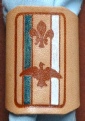 SCOUT PATROL WOGGLES, HAVE THE PATROL COLOURS IN TWO BANDS AS THE OLD PATROL BADGE, ALL PATROLS AVAILABLE, WOGGLES ARE BRANDED IN DARK OR NATURAL LEATHER (SEE COBRA ON PAGE 1 AS EXAMPLE)